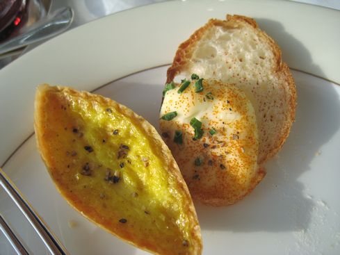 左がキッシュで、右がチーズクリームの添えられたカナッペ(だったハズ)