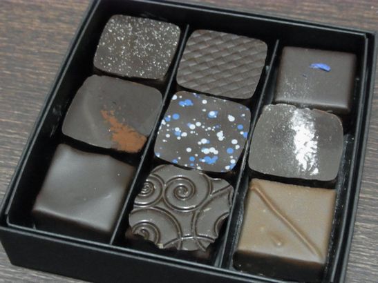 箱入りは4個入り、9個入り、18個入りとあり、4個・9個はセレクトされたショコラがシンプルな形のもの(今回自分が購入した方)とハートなどカラフルなショコラが入ったものと選べるのも◎