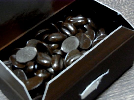 中にはコーヒー豆の形をしたチョコが入ってます