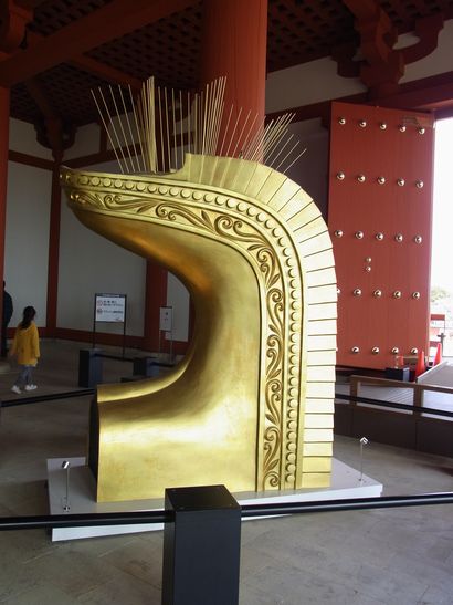 大棟の両端につけられる飾りの一種であり、大極殿にも取りつけられているのが見られます