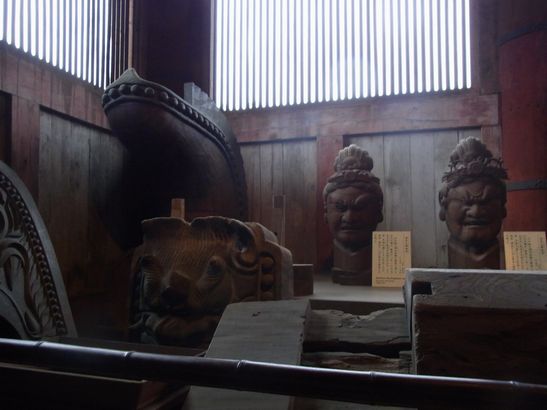 なんか隅の方にある未完成な持国天、増長天の頭部と馬の頭部