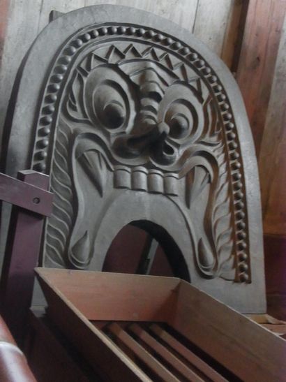 雨+目の前の格子でいまいち不鮮明ですが、実際に見るとその彫りの滑らかさと大きさに凄さを感じます