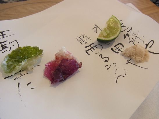 ところてんのようにプルプルと舌触りのよい葛こんにゃくとちょっとだけピリッとする山葵の取り合わせが◎