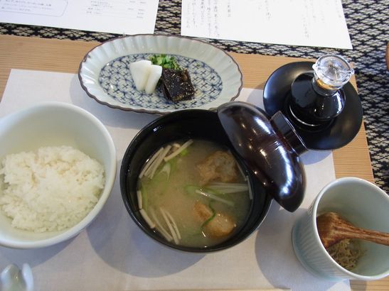 味噌汁はちょっと甘めで、厚めのおあげがしみじみと懐かしい感じ