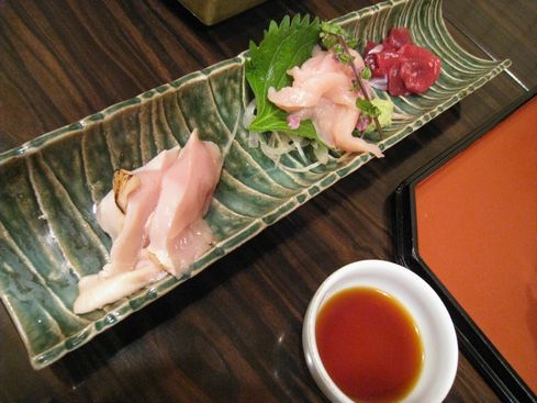 手前から:胸タタキ・ささ身刺・砂肝刺