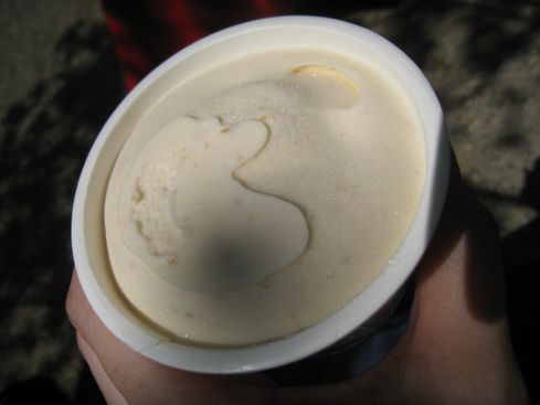 ちょっとシャーベット寄りのサラッとした口どけの中に粒々とした果肉のアクセントとうっすら梅の風味が+