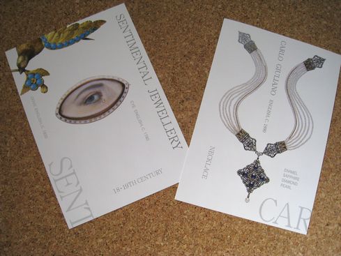 アンティークジュエリーだけじゃなく絵画やジュエリーのデザイン画、ウエディングアイテム(ドレスやショール等)、モーニングアイテム(ドレスや遺髪を利用したアクセサリー)、アフタヌーンティーセットも展示されていました