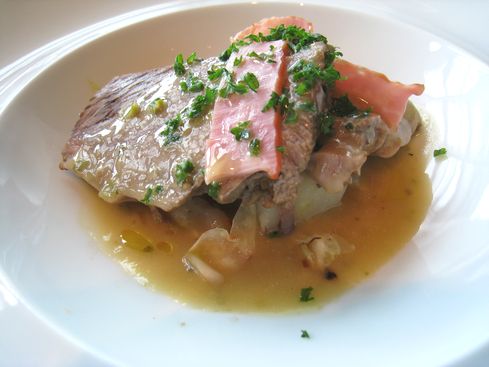 メインの蒸し焼きはレモンをしぼって頂きます